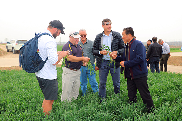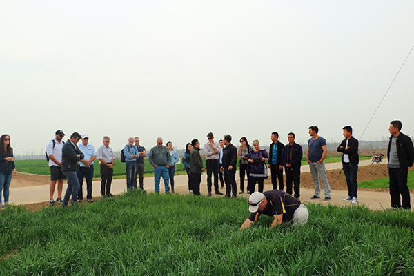 3月23日澳大利亚政府小麦种植与加工代表团一行14人来曹新庄试验农场考察我校小麦育种的目标和现状。